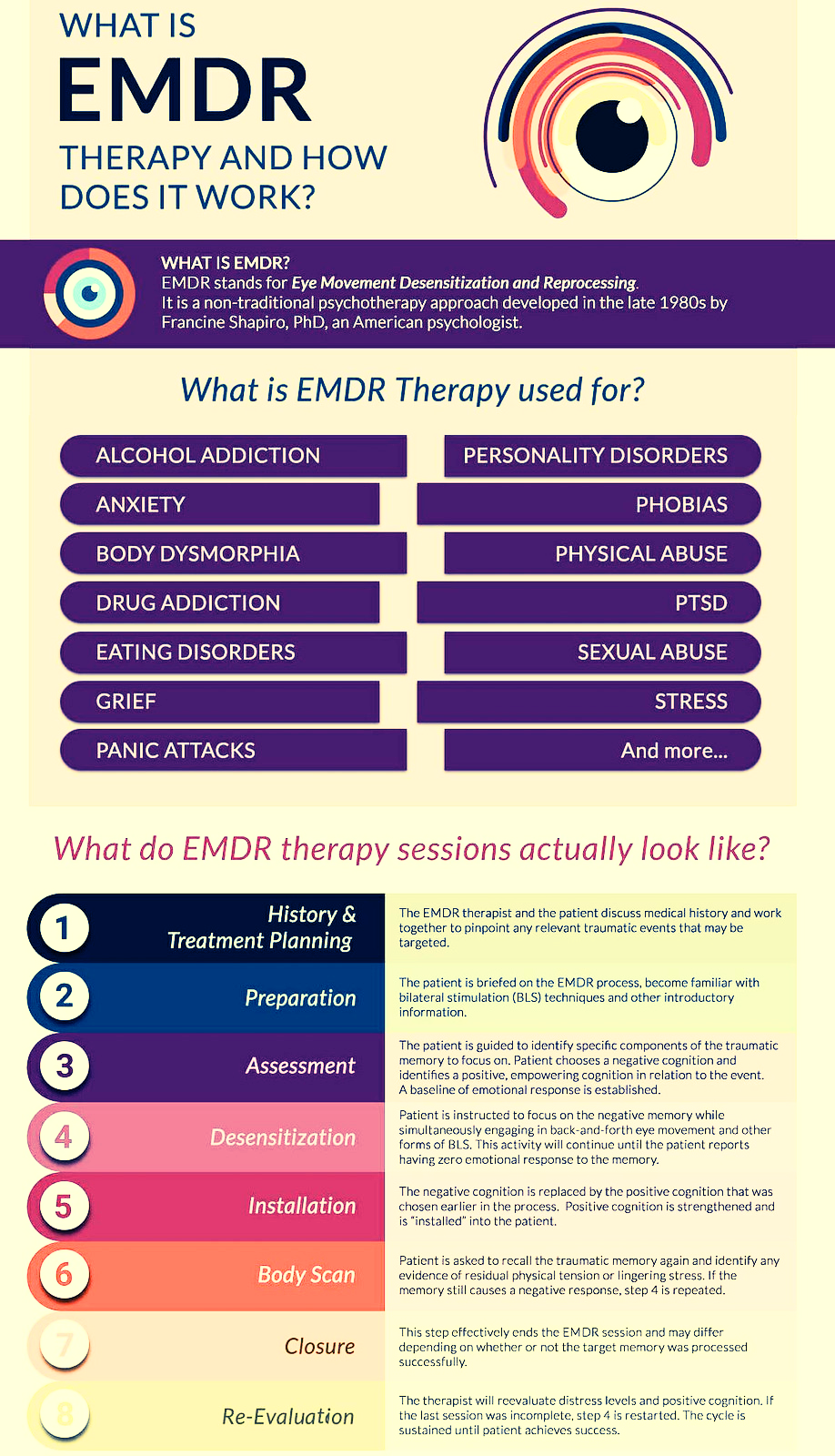 EMDR is a mental health treatment technique. This method involves moving your eyes a specific way while you process traumatic memories.